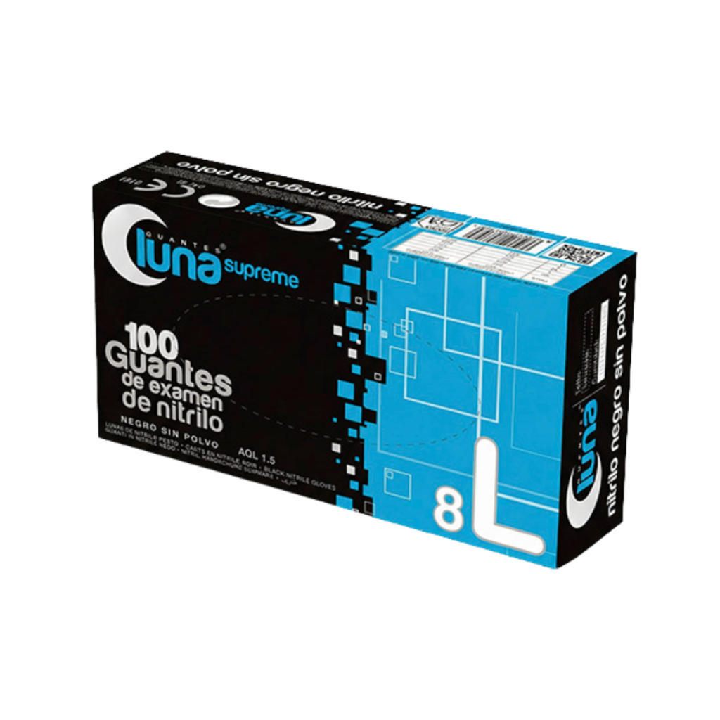 Guantes de nitrilo color negro, estuche de 100 Uds. No estéril, ambidiestro. La superficie interna está clorinada para facilitar el calzado sin necesidad de polvo. Exento de látex natural. De una mayor resistencia y espesor, mantiene la comodidad y dexteridad.  Tiene un nivel de calidad AQL 1.0. Cumple con las normativas europeas de aplicación: EN 374(1-2-4-5), EN 16523-1, EN 455 (1-2-3-4), EN 420 y EN 388.
