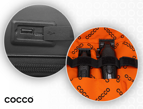La Mochila porta herramientas de COCCO HAIRPRO es la mochila ideal para barberos en movimiento. Cuenta con múltiples compartimentos para organizar tus herramientas, carcasa rígida para máxima protección, cerradura TSA y cargador portátil integrado. Su diseño de apertura plana facilita el acceso y la hace perfecta para trabajar con comodidad en cualquier lugar.