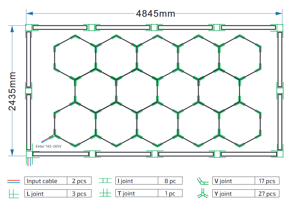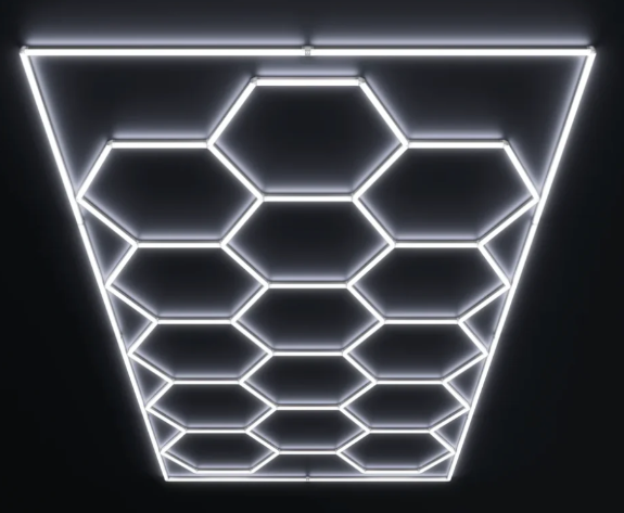 Luces LED hexagonales en colmena.