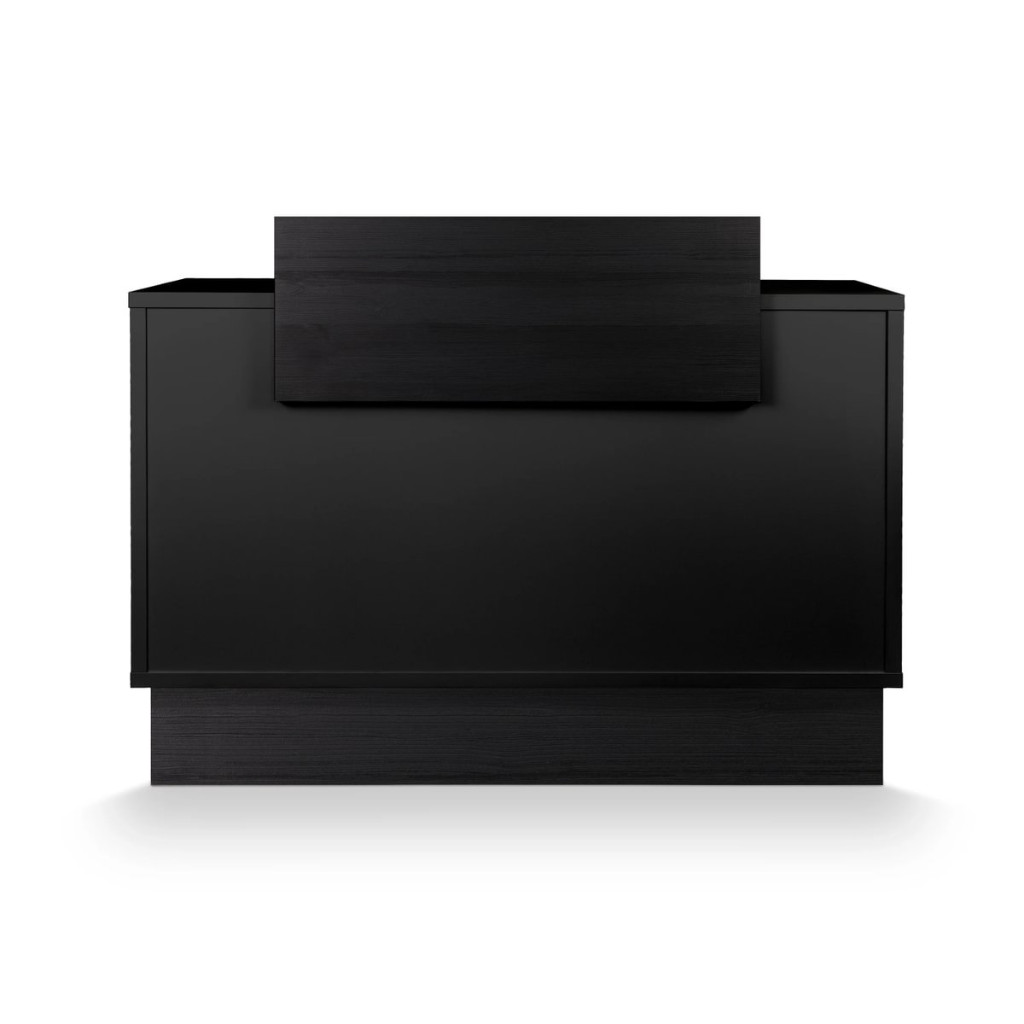 Fabricada en aglomerado de alta densidad, recubierto con melamina negra a doble cara y cantos de PVC redondeados para mayor durabilidad.