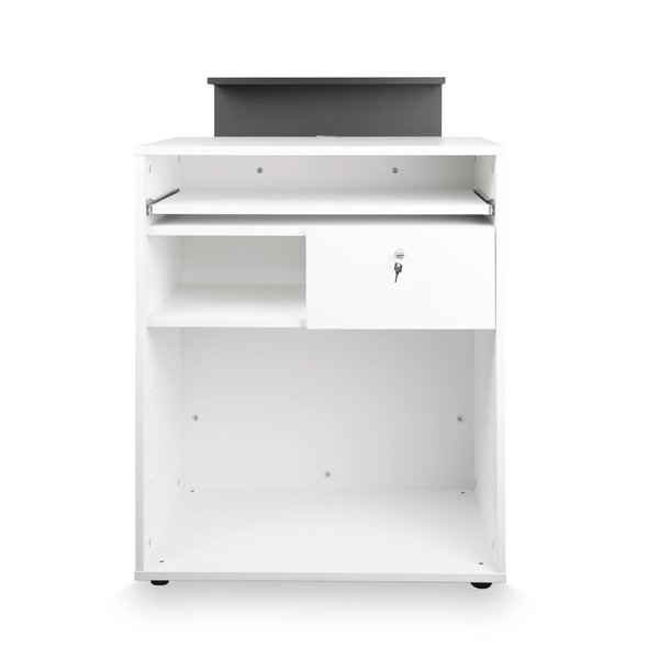 Fabricada en aglomerado de alta densidad, recubierto con melamina blanca a doble cara y cantos de PVC redondeados para mayor resistencia y durabilidad.