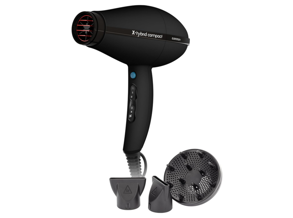 Secador profesional HYBRID COMPACT en color NEGRO compacto y ligero con rejilla revestida en turmalina.