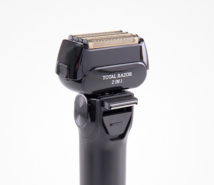 Máquina de afeitado 2 en 1, equipada con cabezal flotante de 4 cuchillas de acero inoxidable para un corte limpio y uniforme en seco o húmedo. Incluye cuchilla trimmer para definir patillas y detalles, y su cabezal oscilante se adapta a los contornos del rostro para mayor precisión.