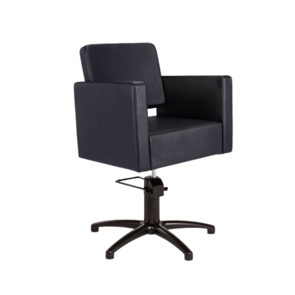 Silla de corte modelo DORA BLACK. Elegante, sobria y contemporánea. Despierta pasiones en muchos salones. Estructura interior metálica. Espuma de PU de alta densidad inyectada.