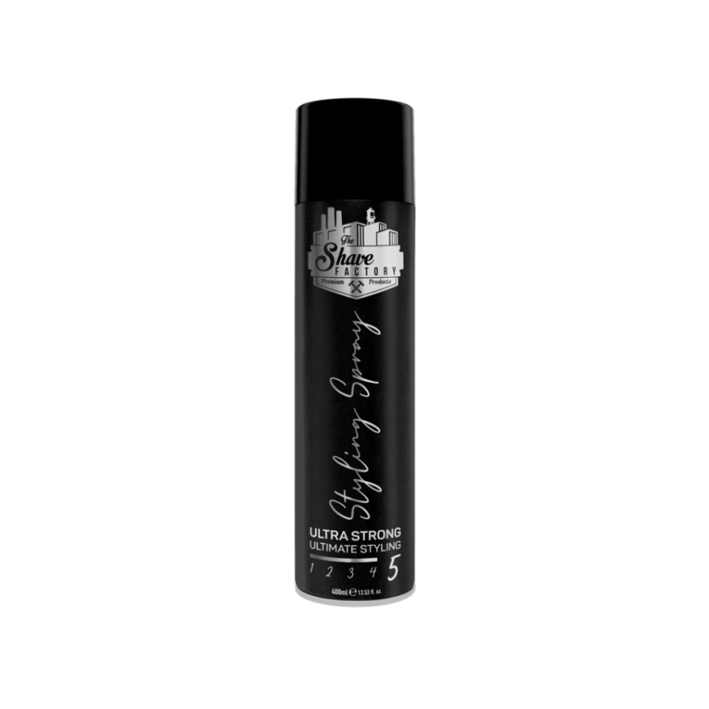 The Shave Factory Spray Ultra Fijador 500ML con un 25% MÁS de producto gratis: Facilidad de uso, flexibilidad y fijación ultrafuerte de larga duración. Producto de alta calidad para barberos profesionales.