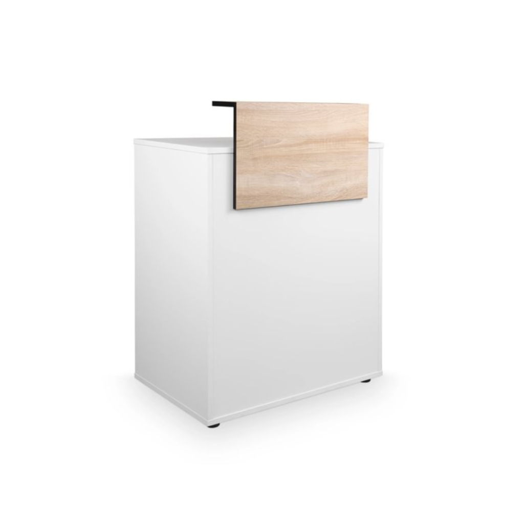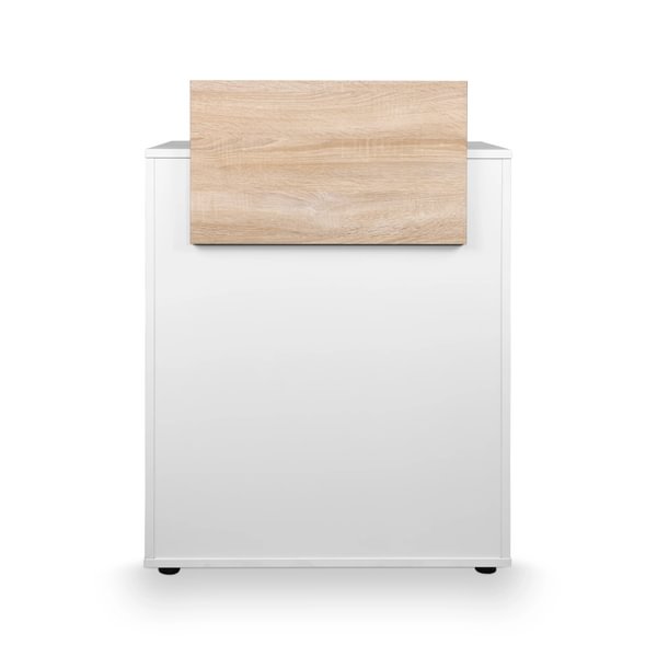 Fabricada en aglomerado de alta densidad, recubierto con melamina blanca a doble cara y cantos de PVC redondeados para mayor resistencia y durabilidad.