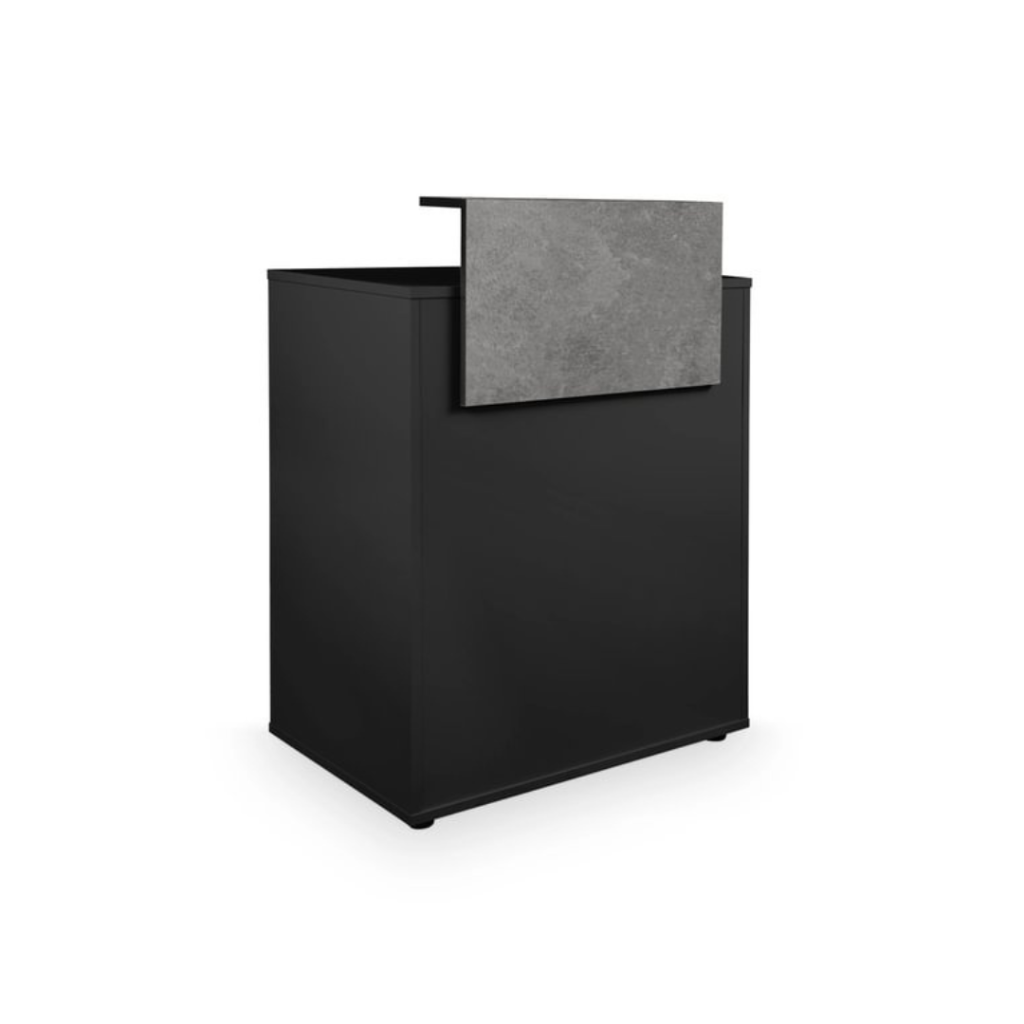 Fabricada en aglomerado de alta densidad, recubierto con melamina negra a doble cara y cantos de PVC redondeados para mayor resistencia y durabilidad.